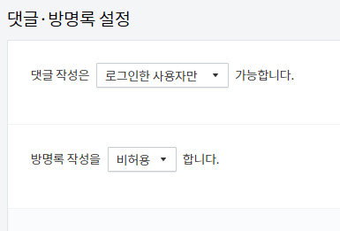 티스토리 블로그의 댓글 설정 화면